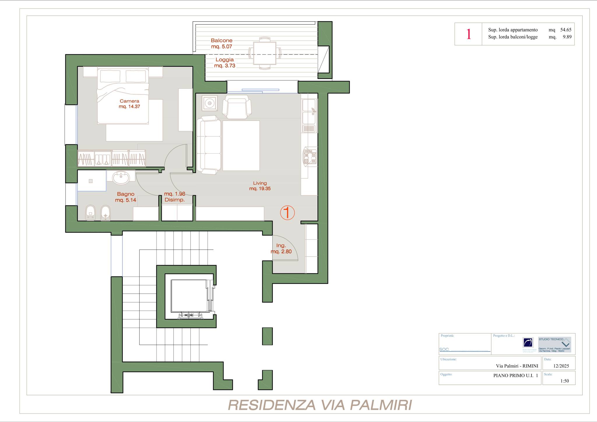 Nello specifico, proponiamo la soluzione 1 il BILOCALE del piano primo (disponibile anche al piano secondo), di circa mq. 52 composto da un ingresso, una zona living di circa 20 mq. , camera matrimoniale, bagno ed un comodo terrazzo parzialmente loggiato sulla zona giorno.